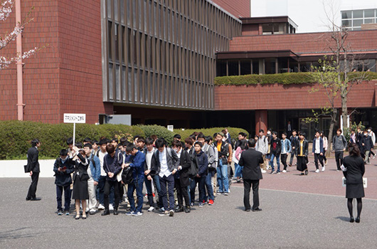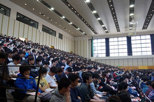 2018年4月2日(月)、初夏を思わせる晴天のもと、平成30年度 日本大学生産工学部および大学院生産工学研究科の開講式が津田沼キャンパス体育館で行われました。開講式では、Pepper も新入生を歓迎しました。また、受付では、昨年度、鳥人間コンテスト選手権大会(滑空機部門)での優勝トロフィーと表彰状も新入生を迎えました。