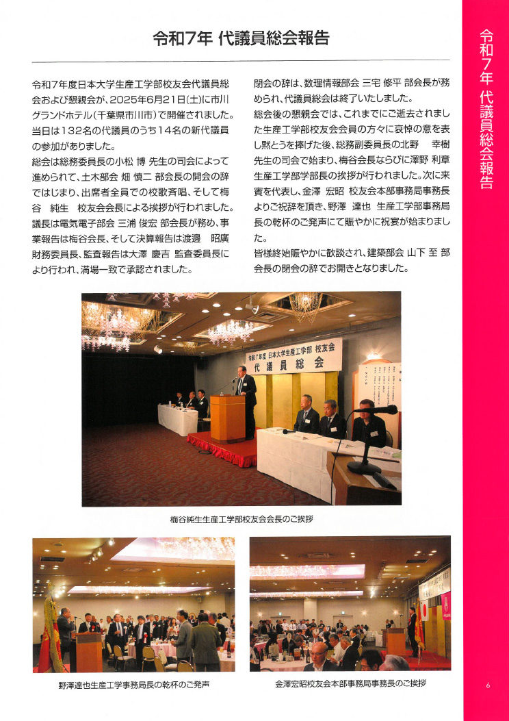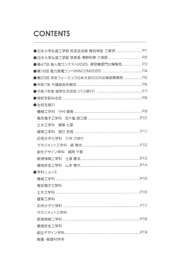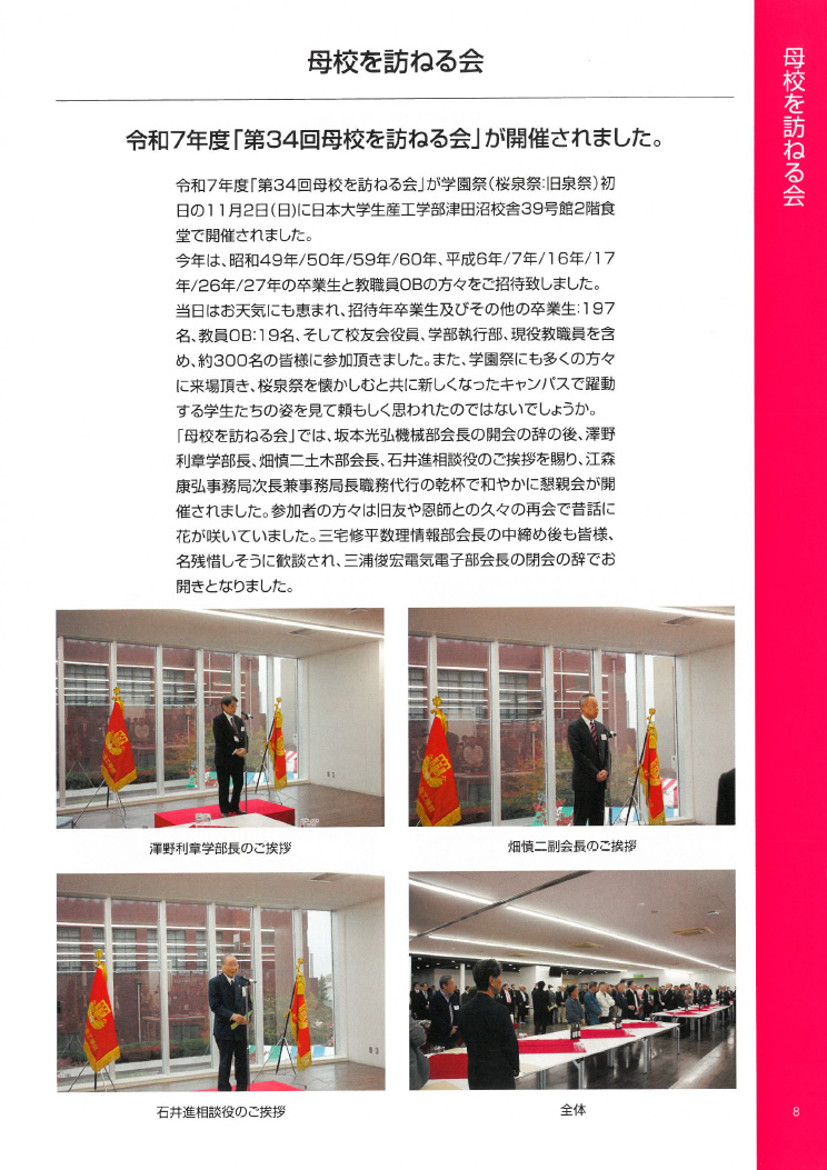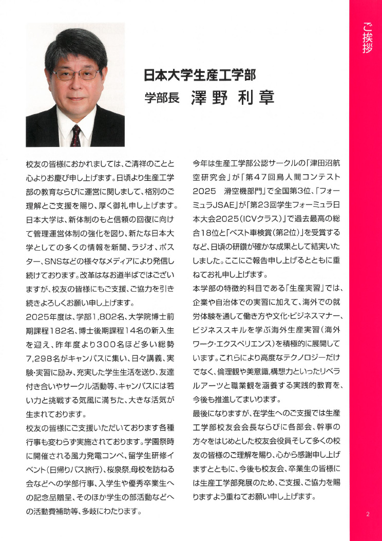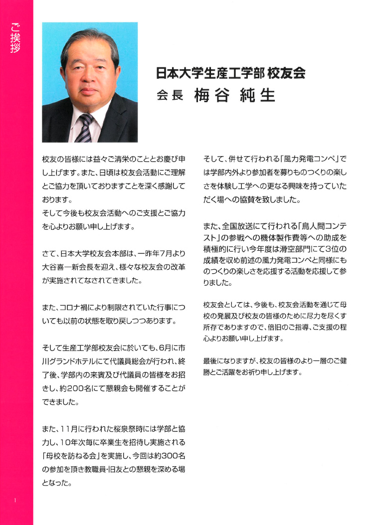 - ●日本大学生産工学部 校友会会長 梅谷純生 ご挨拶