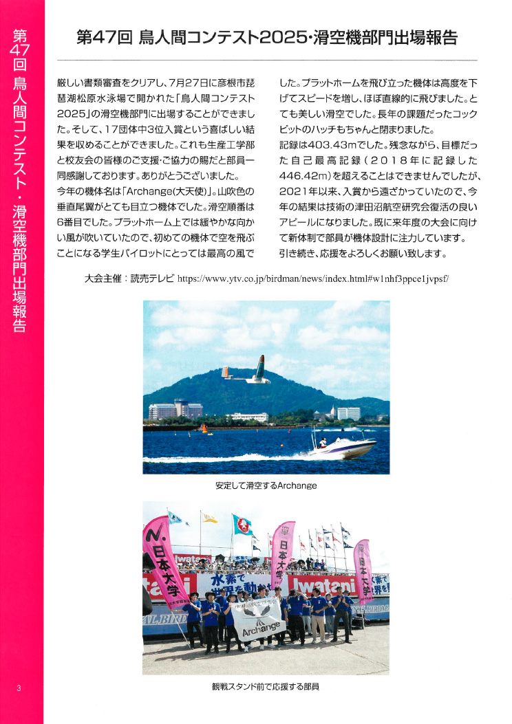 - ●第47回 鳥人間コンテスト2025・滑空機部門出場報告