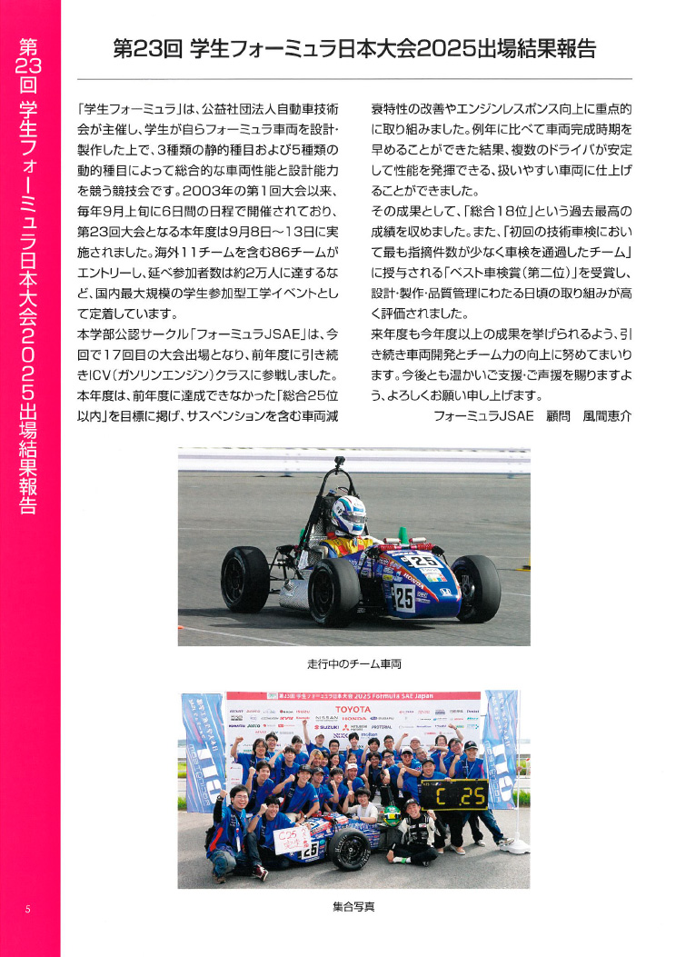 - ●第23回 学生フォーミュラ日本大会2025出場結果報告